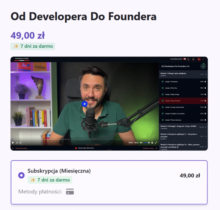 Zmieniliśmy rejestrację. Teraz jest dwustopniowa. Podajesz imię, nazwisko i email. Dostajesz kod na maila. Potwierdzasz i od razu jesteś w panelu z gotową platformą.